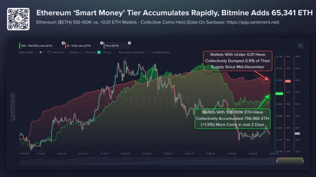 Theo dữ liệu của Santiment, sự gia tăng tích lũy của cá voi diễn ra sau những bình luận gần đây của Tom Lee, người có thái độ lạc quan đối với altcoin đã góp phần mở rộng tâm lý thị trường tăng giá. Tom Lee, Giám đốc điều hành (CEO) của Bitmine Immersion, tuyên bố rằng kịch bản cơ sở của công ty cho Ethereum là cuộc đấu giá đang ở giai đoạn cuối của 'mùa đông crypto mini'. Tuyên bố này đơn giản là đã thêm dầu vào lửa lạc quan khi tiếng nói của các tổ chức và hành vi on-chain bắt đầu hội tụ.
