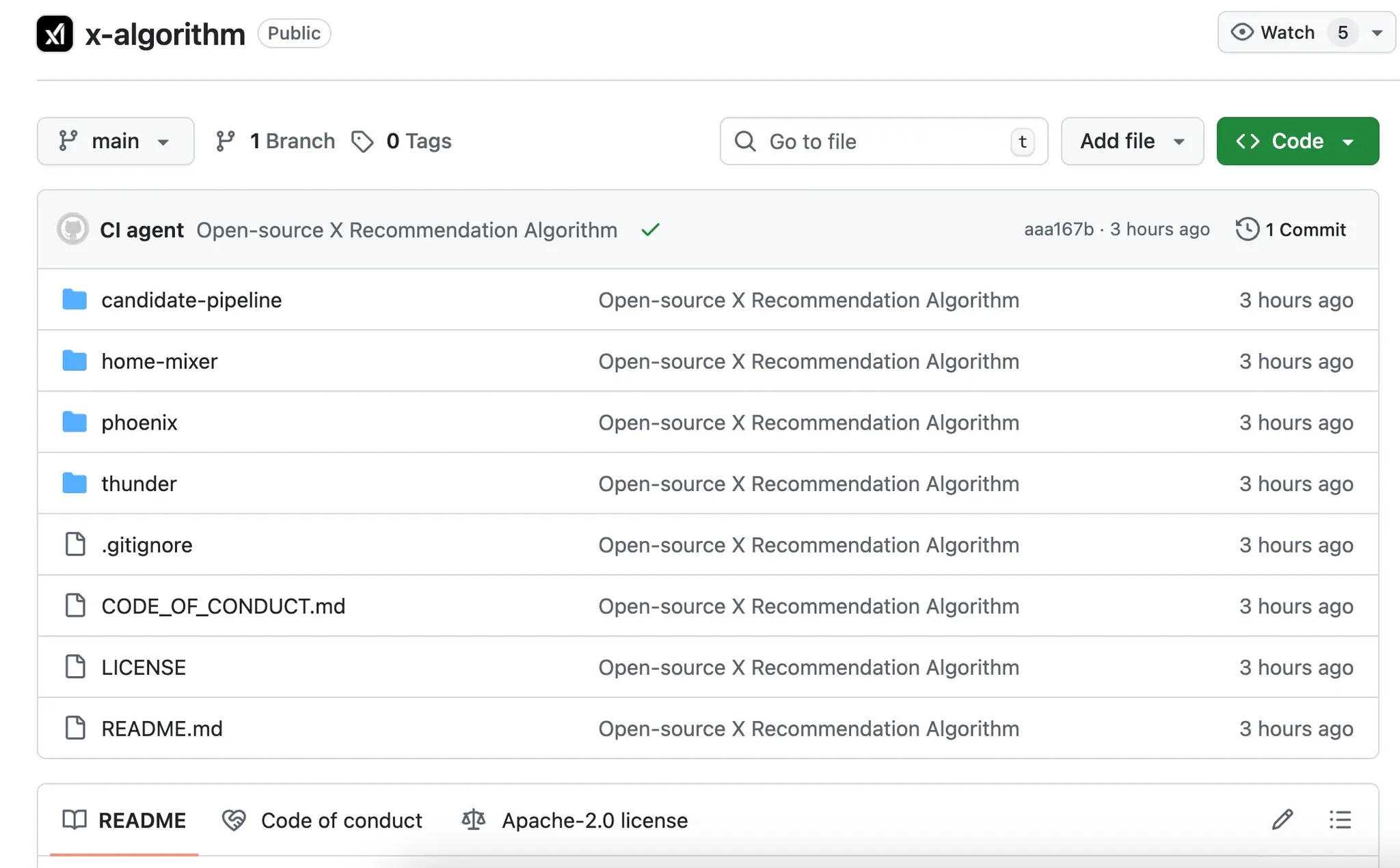Trang chủ kho lưu trữ Github của thuật toán nền tảng mới nhất đã được X công khai