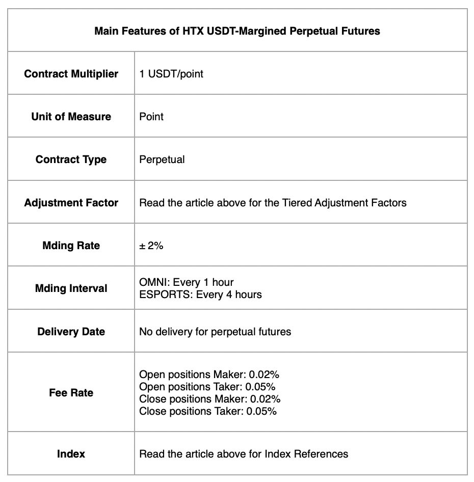 In response to market fluctuations and risk factors, HTX may adjust the above parameters to ensure the safety of your assets. Please refer to the real-time parameters on the trading page for the most up-to-date information.