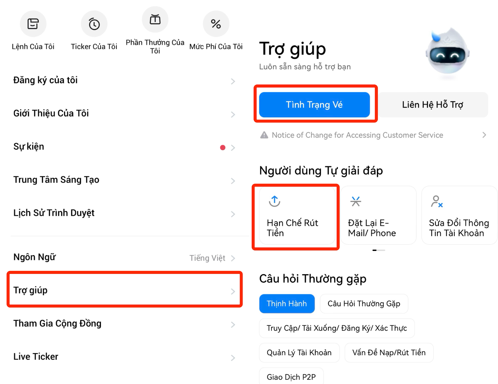 Để đảm bảo an toàn cho tài khoản và tiền của bạn, đội ngũ của chúng tôi có thể yêu cầu thêm hồ sơ như xác minh KYC bằng video hoặc bằng chứng về nguồn tiền. Vui lòng làm theo hướng dẫn và gửi tất cả hồ sơ được yêu cầu trong thời gian quy định. Bạn có thể theo dõi yêu cầu của bạn mọi lúc trong [Hỗ trợ] → [Tình Trạng Vé].