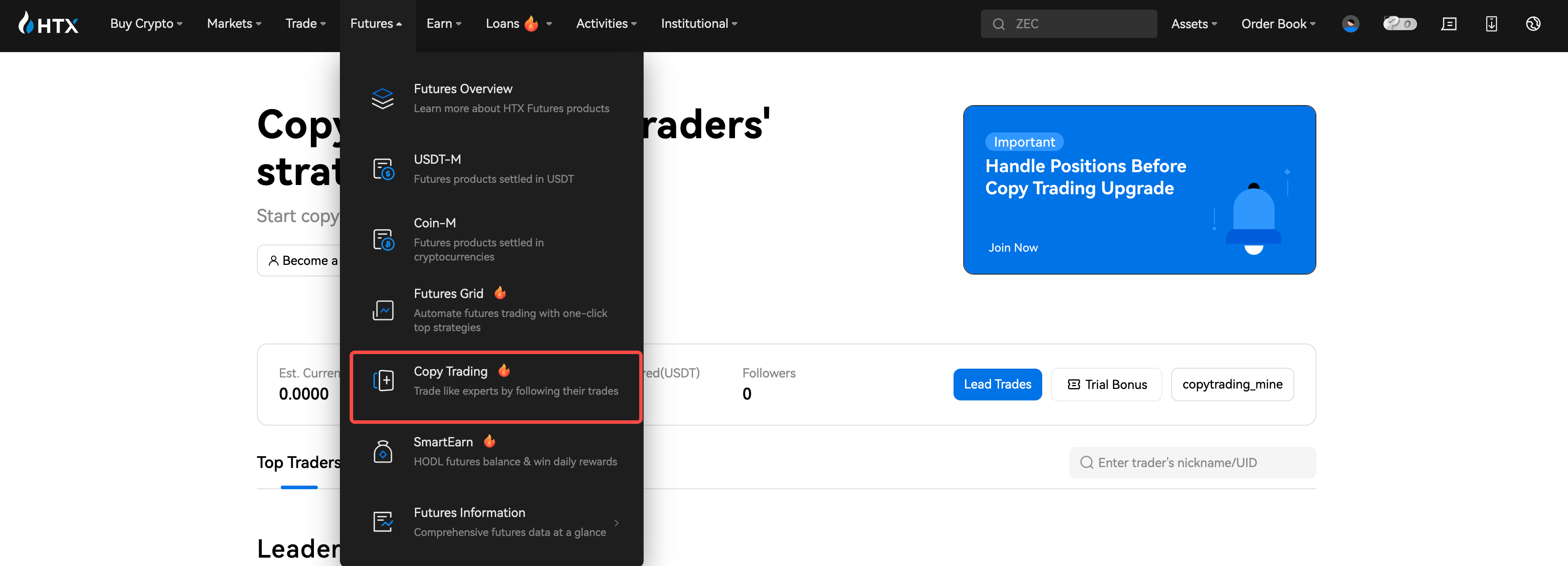 Hướng dẫn Copy Trading Hợp đồng Tương lai cho Nhà giao dịch Chính (Trang web)