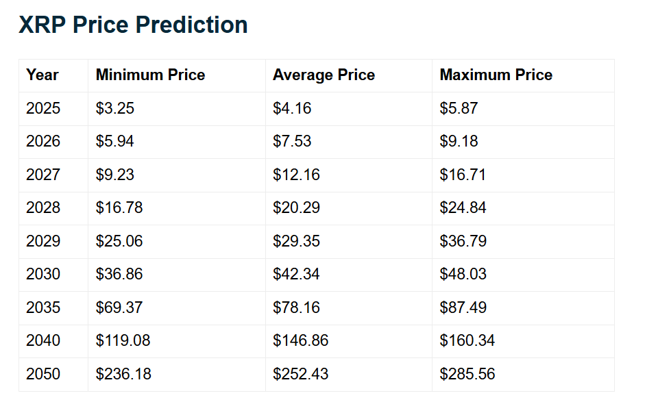 与此同时,对于长期持有者来说,2% 的增长将带来可观的回报。例如,一位投资者以当前 3.36 美元的价格投入 10,000 美元,将获得 2,976 个 XRP 代币。持有至 2040 年 7 月,预计价格为 119.81 美元价格将使该项投资增值超过 356,000 美元。