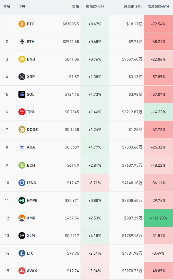 加密市场:比特币现报87805美元,ETH价格为2927美元,HTX目前价格0.000001663美元。