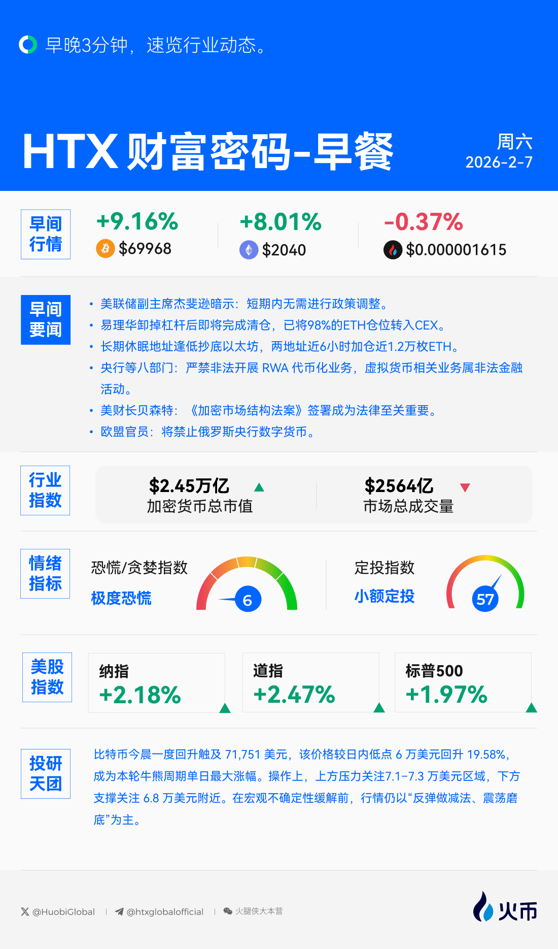 今日市场动态亮点:美联储副主席杰斐逊暗示:短期内无需进行政策调整;长期休眠地址逢低抄底以太坊,两地址近6小时加仓近1.2万枚ETH。