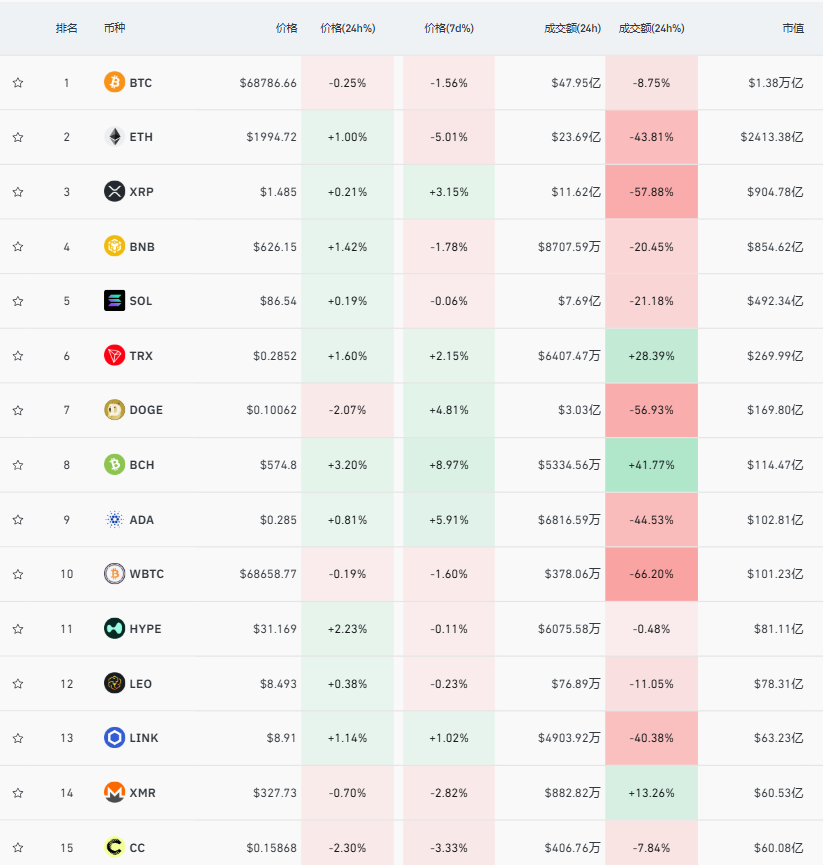 加密市场:比特币现报68786美元。ETH价格为1994美元,HTX目前价格0.000001714美元, 涨幅0.35%。