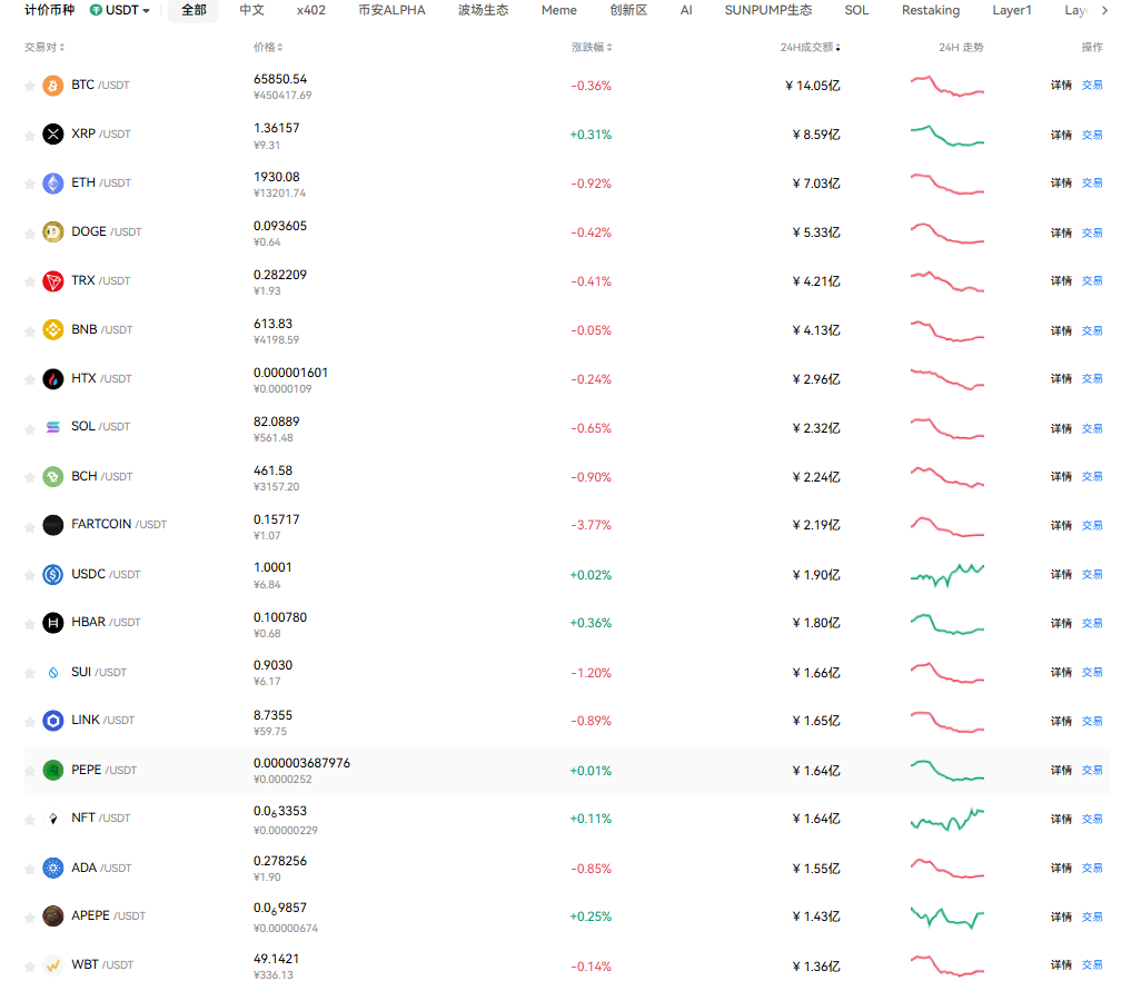 加密市场:比特币现报65850美元。ETH价格为1930美元,HTX目前价格0.000001601美元, 跌幅0.25%。