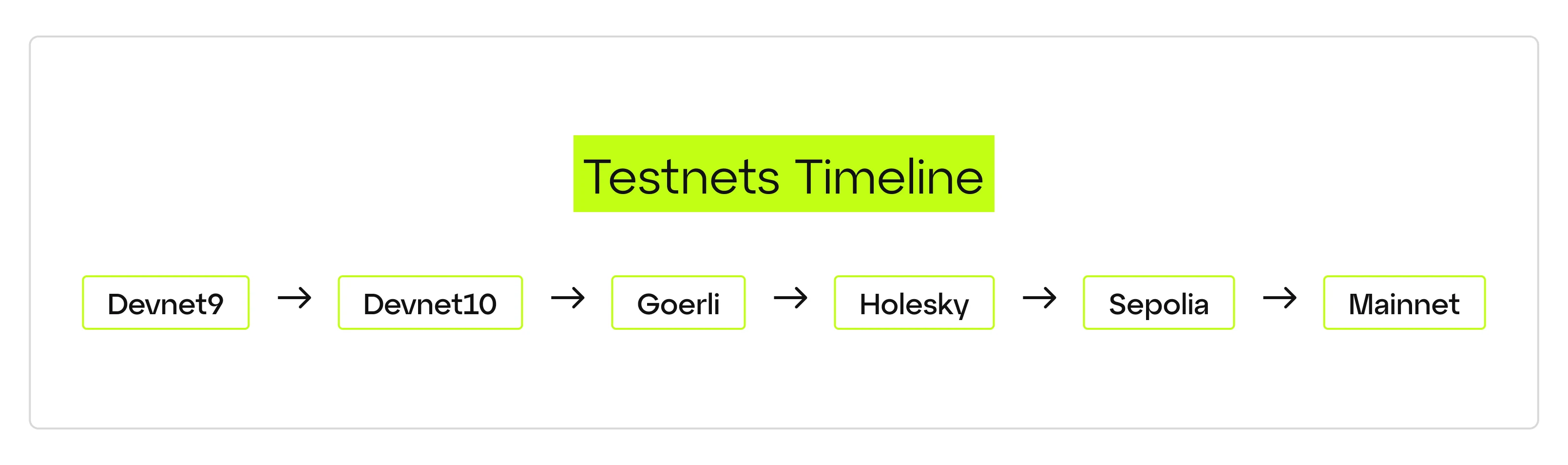 按照前期以太坊ACDE会议提供的路线,坎昆升级测试将按Goerli、Holesky、Sepolia等测试网顺序进行。