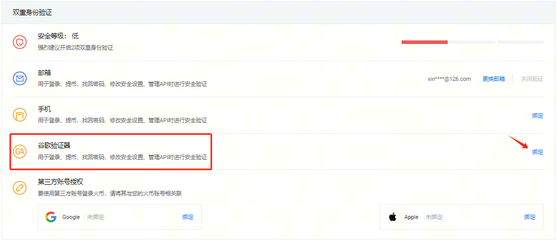 第四步:进行邮箱或手机验证,完成后即绑定了身份验证器。