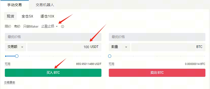 现货买入BTC操作图示(Web)