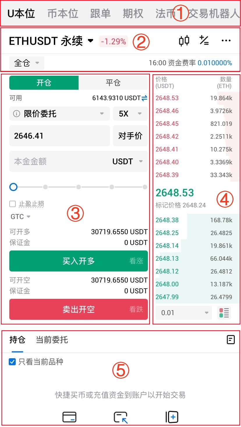 合约交易界面介绍(APP)