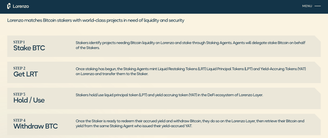 Lorenzo Protocol是一个基于Babylon构建的流动性再质押协议,旨在通过引入流动性质押和隐私增强功能来提升比特币的应用能力。该项目允许比特币持有者将BTC转换为stBTC,实现在不锁定资金的情况下参与比特币抵押并获得奖励。Lorenzo创新性地将流动性再质押代币(LRT)分为流动性本金代币(LPT)和收益累积代币(YAT),这种玩法类似于Pendle的PT和YT。这种分离机制为流动性重新质押提供了灵活的解决方案,增强了比特币重新质押的流动性和可访问性。项目的一个重要特点是不要求最低质押时间,也没有"解除绑定"时间。这意味着投资者可以避免被锁定在质押中的风险,并在市场波动时保持灵活性。Lorenzo提供由Babylon BTC共享安全性保障的EVM兼容Cosmos链,用于发行和结算BTC流动再抵押代币。这为跨链操作和更广泛的DeFi应用提供了基础。