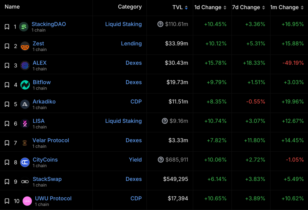 https://defillama.com/chain/Stacks?pool2=false&staking=false