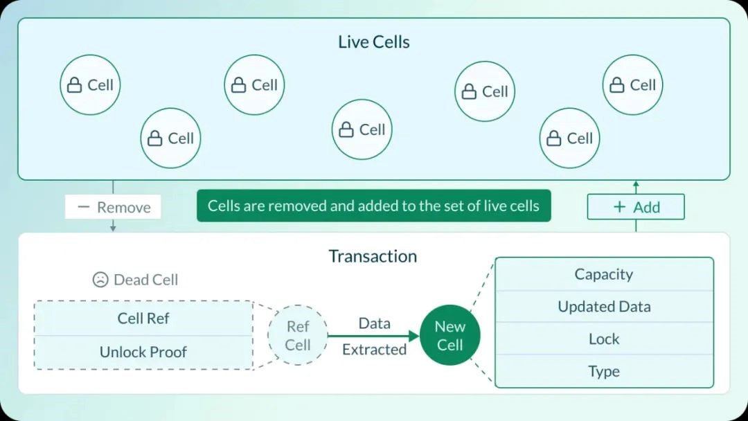 与比特币的有限选项相比,这一系统使 CKB 能够支持更多的功能,使其更适合各种应用。CKB 中的每个 Cell 都是一个可编程 Cell ,可以保存不同的数据类型,如代币、智能合约和特定的应用状态。它还可以运行复杂的类似于图灵完备语言中的脚本。Cell 独立运行,这意味着它们可以在不影响区块链其他部分的情况下进行更新或引用,通过并行的方式提高可扩展性。