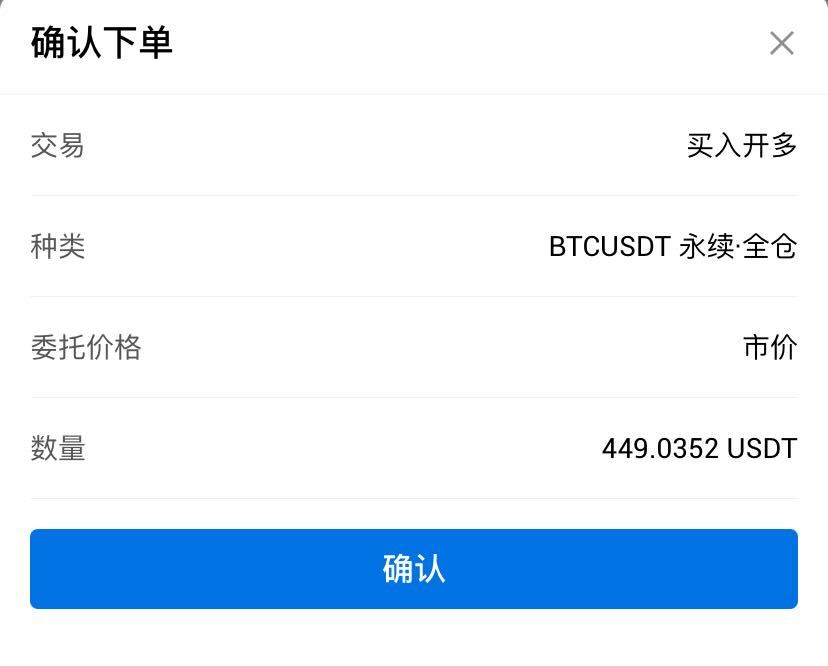 4. 确认订单,因为是市价委托,所以会以当前市场价格立即成交。