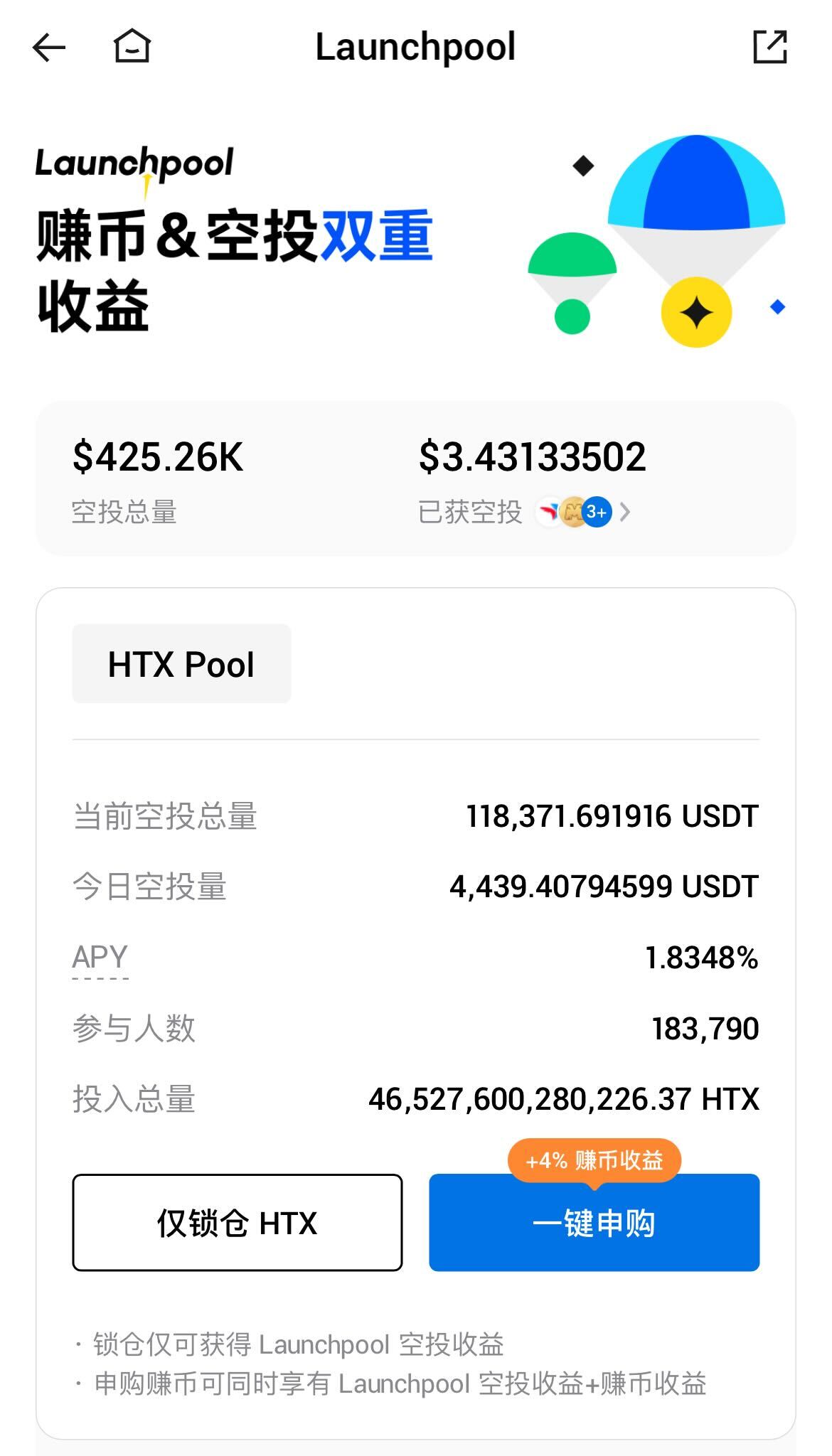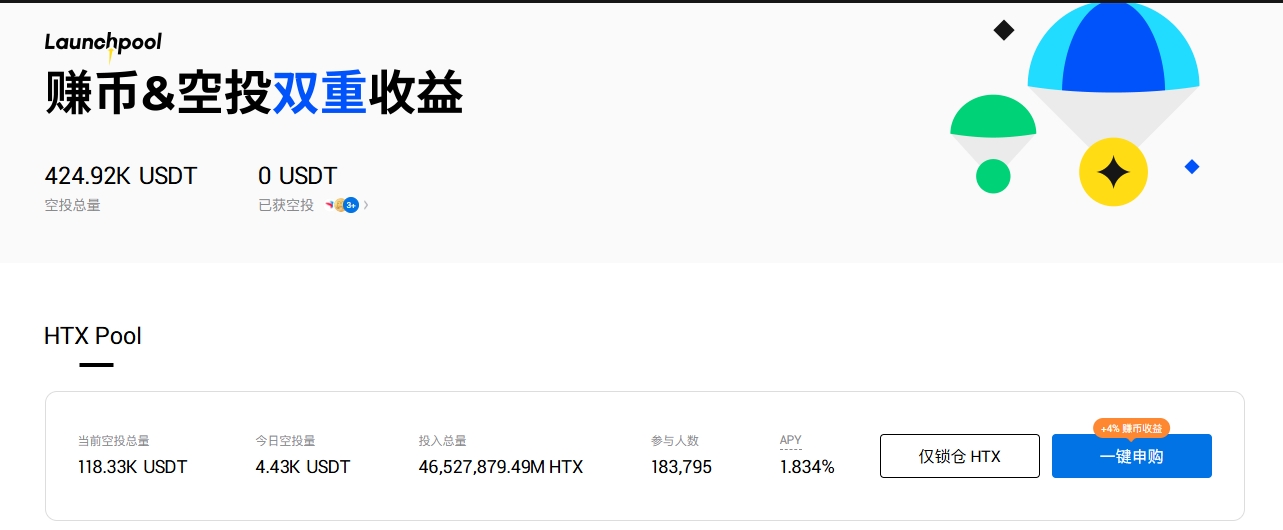Launchpool是火币HTX针对新上资产的奖励活动,用户可通过锁仓HTX一段时间,获得被动的新资产代币空投奖励及赚币奖励,也就是锁仓HTX可获得双重收益。