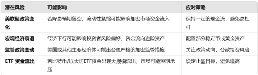 尽管2025年加密市场的整体趋势向好,但仍然需要警惕以下潜在风险,并做好相应的风险管理: