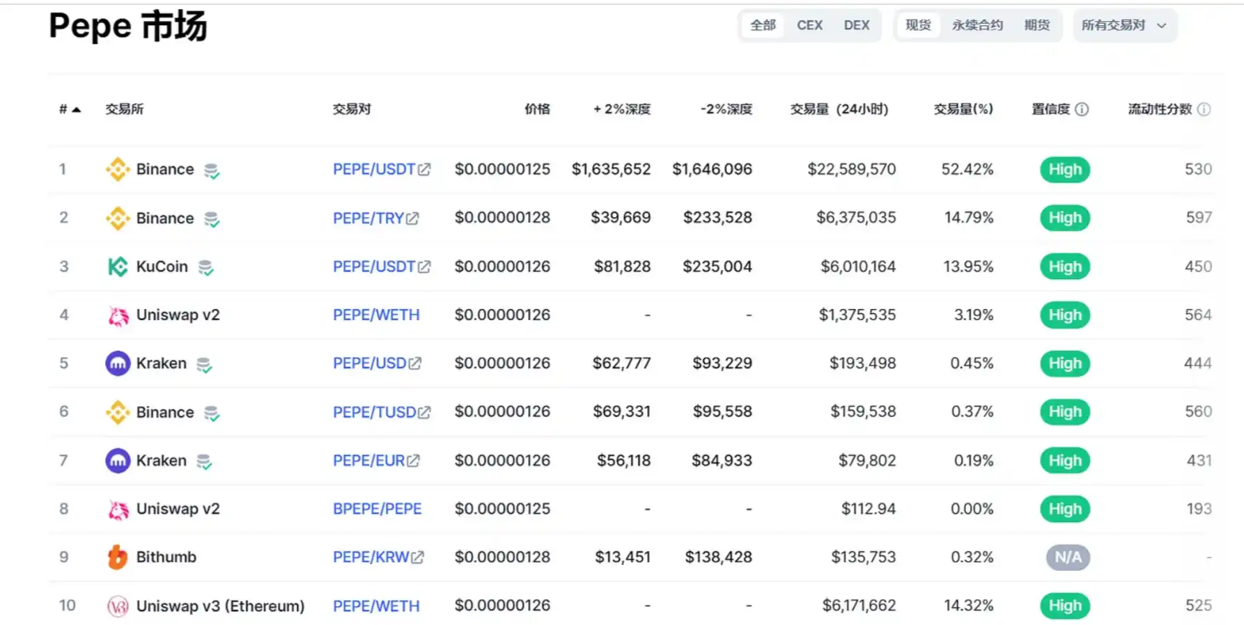 比如说 PEPE,在上币安之前,uniswap 是最主要的交易量。但是上币安后,主要在币安。