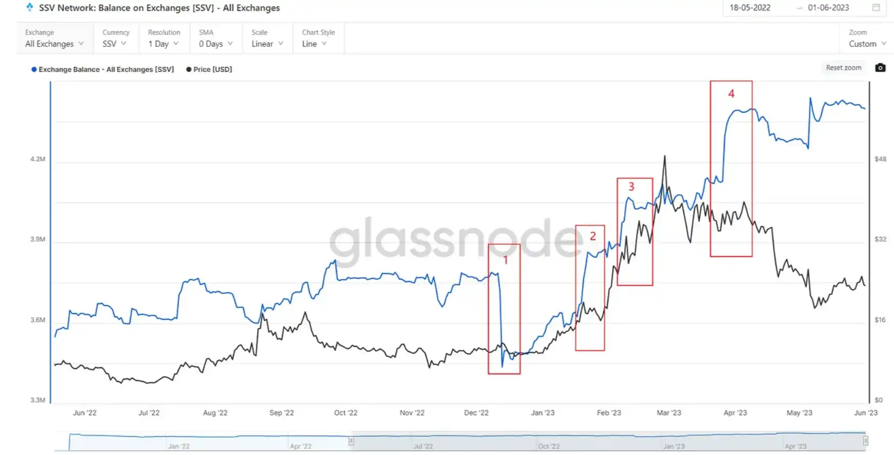 2)交易所大量充值,ssv 从 21 刀调整到 16 刀