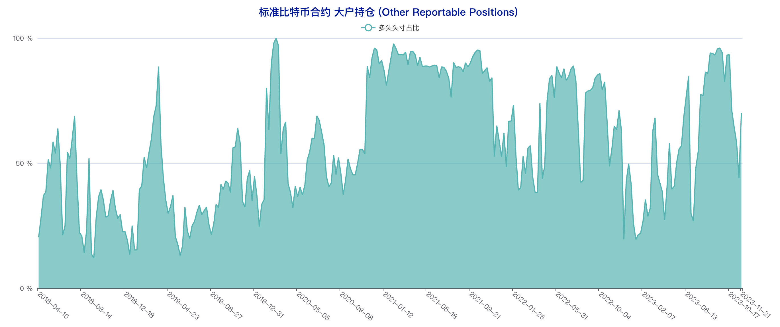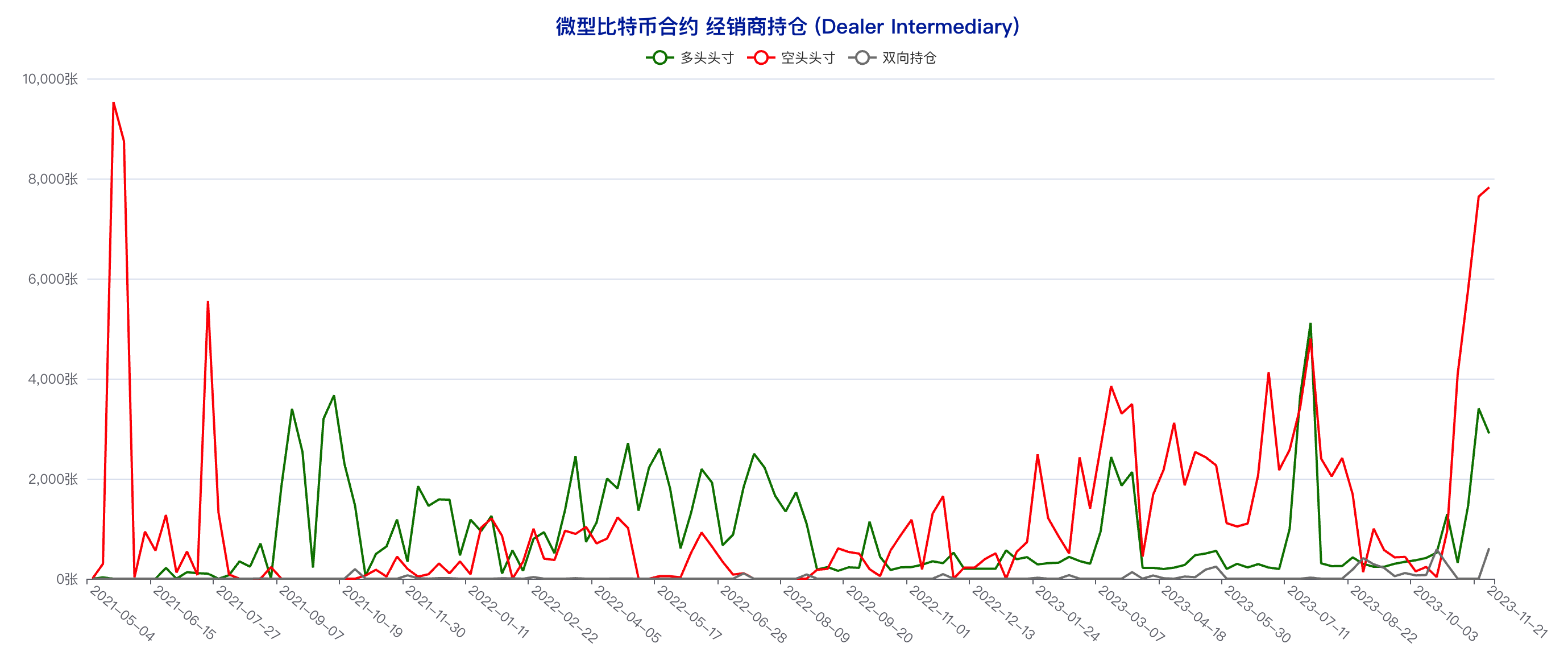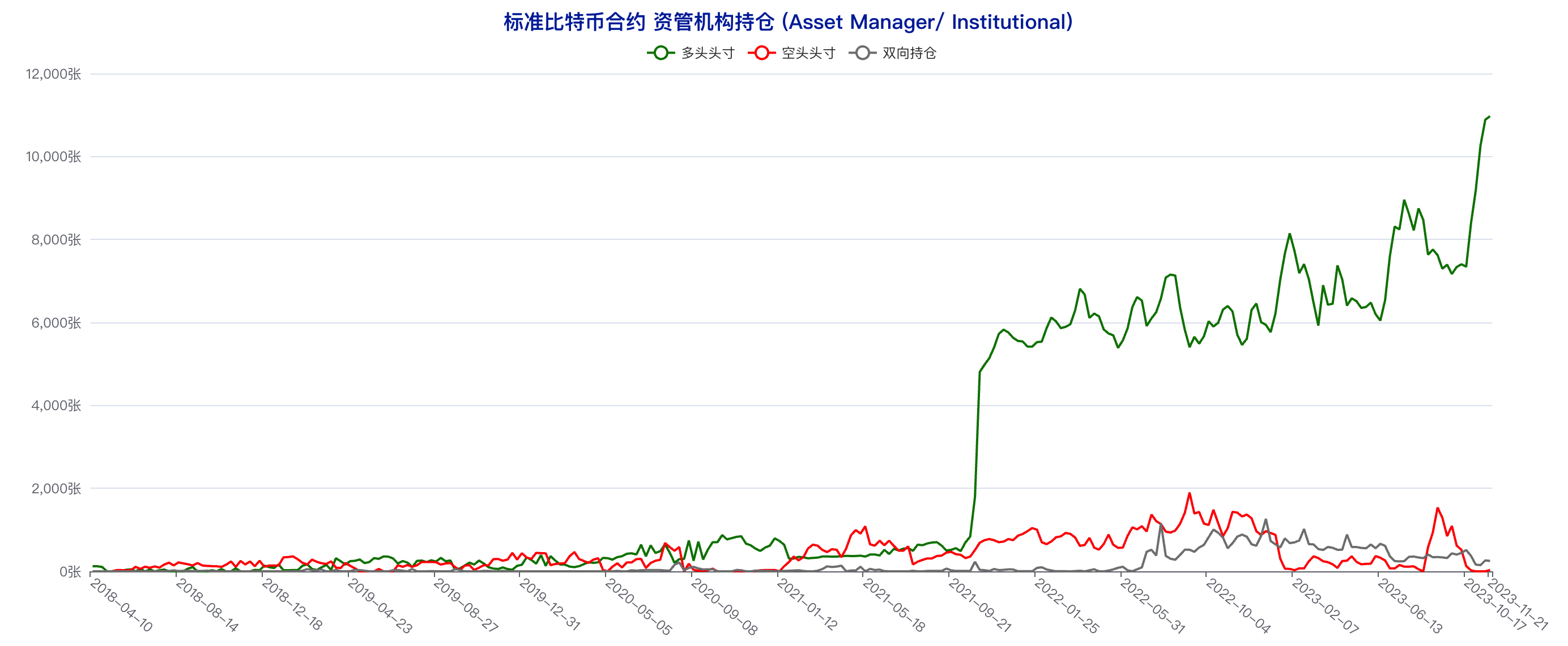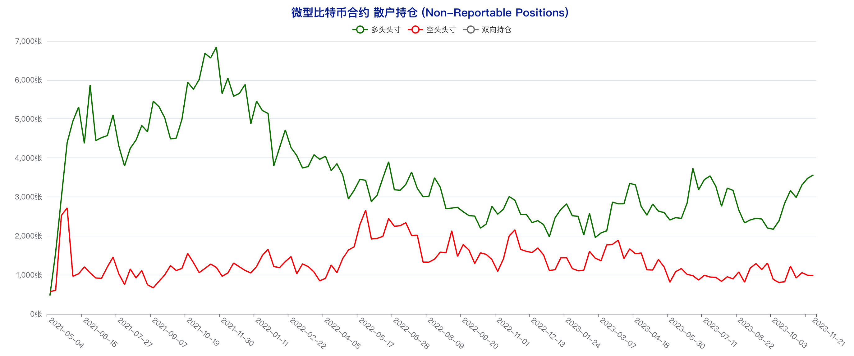受假期影响,最新一期 CFTC 持仓周报延后至本周二发布,11 月 28 日公布的最新一期 CFTC CME 比特币持仓周报( 11 月 15 日 - 11 月 21 日)显示,比特币标准合约总持仓量自 21203 上升至 21939,该数值再度创出历史新高。