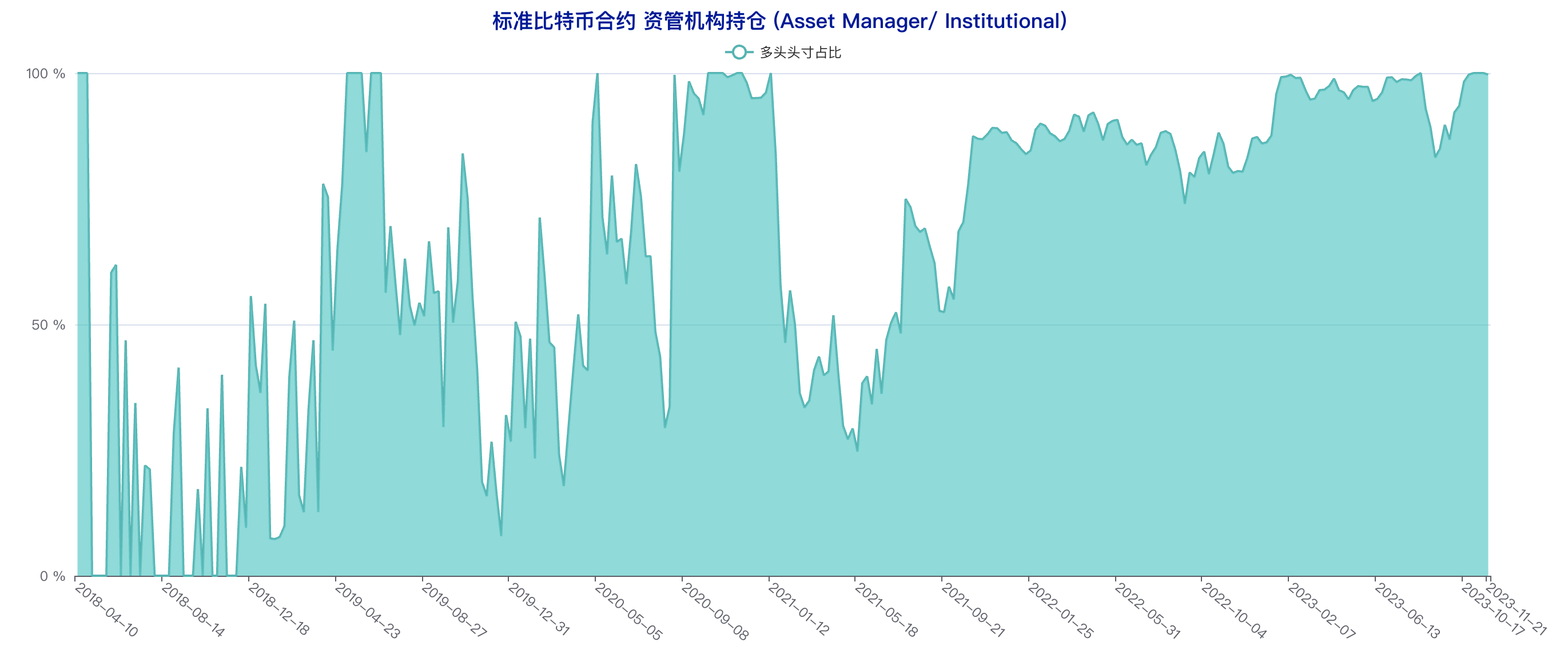 资管机构多头头寸自 10886 上升至 10973,该数值续创历史新高,空头头寸自 0 上升至 34,资管机构在最新统计周期内进行了多空双向同步增持,不过空头头寸持仓量微乎其微,基本可以忽视,这类账户仍然处在坚定看涨的状况之中。