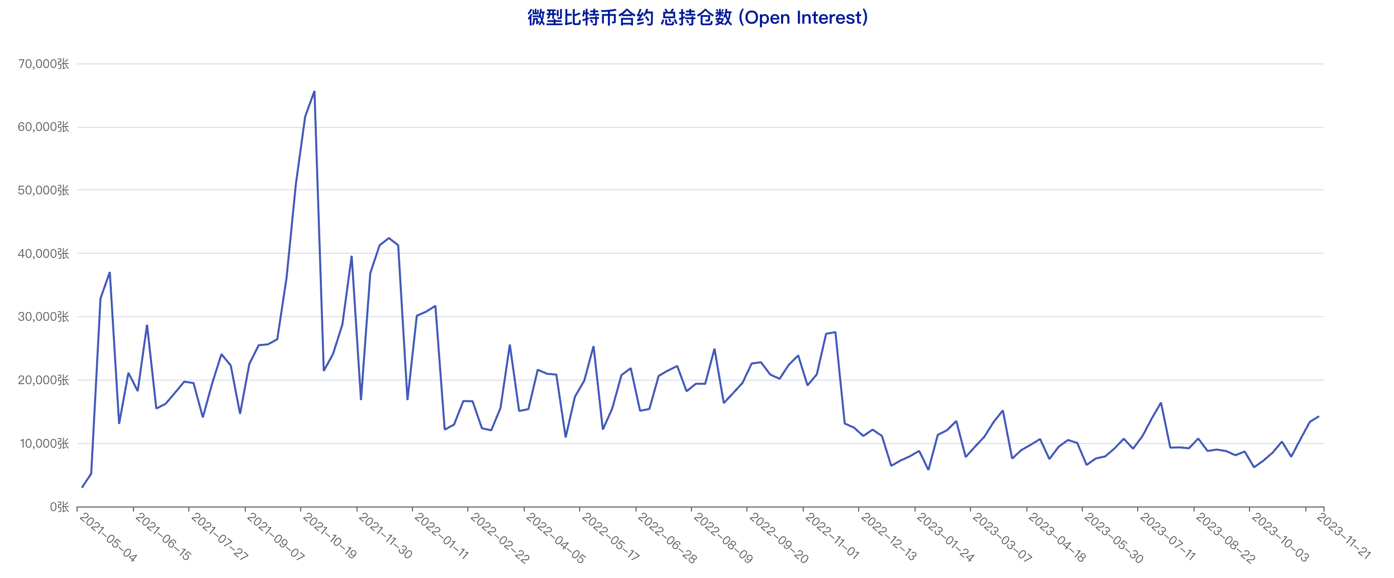 比特币微型合约总持仓量自 13372 上升至 14267。