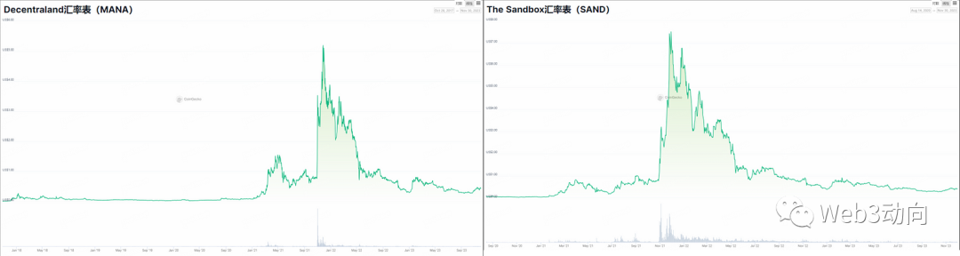 元宇宙大概是这个因素最佳的例子。元宇宙是一个宏大的概念,作为真实世界的延伸与拓展,人们对元宇宙巨大的机遇和革命性的作用都非常期待,也就开启了“元宇宙”的热潮,元宇宙相关概念的代币比如 $Mana 和 $Sand 在上轮牛市中都有着不错的表现。