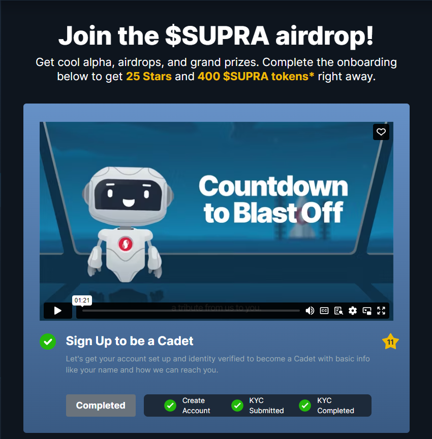 参加未来的空投并直接收到(400 SUPRA大约 $25)