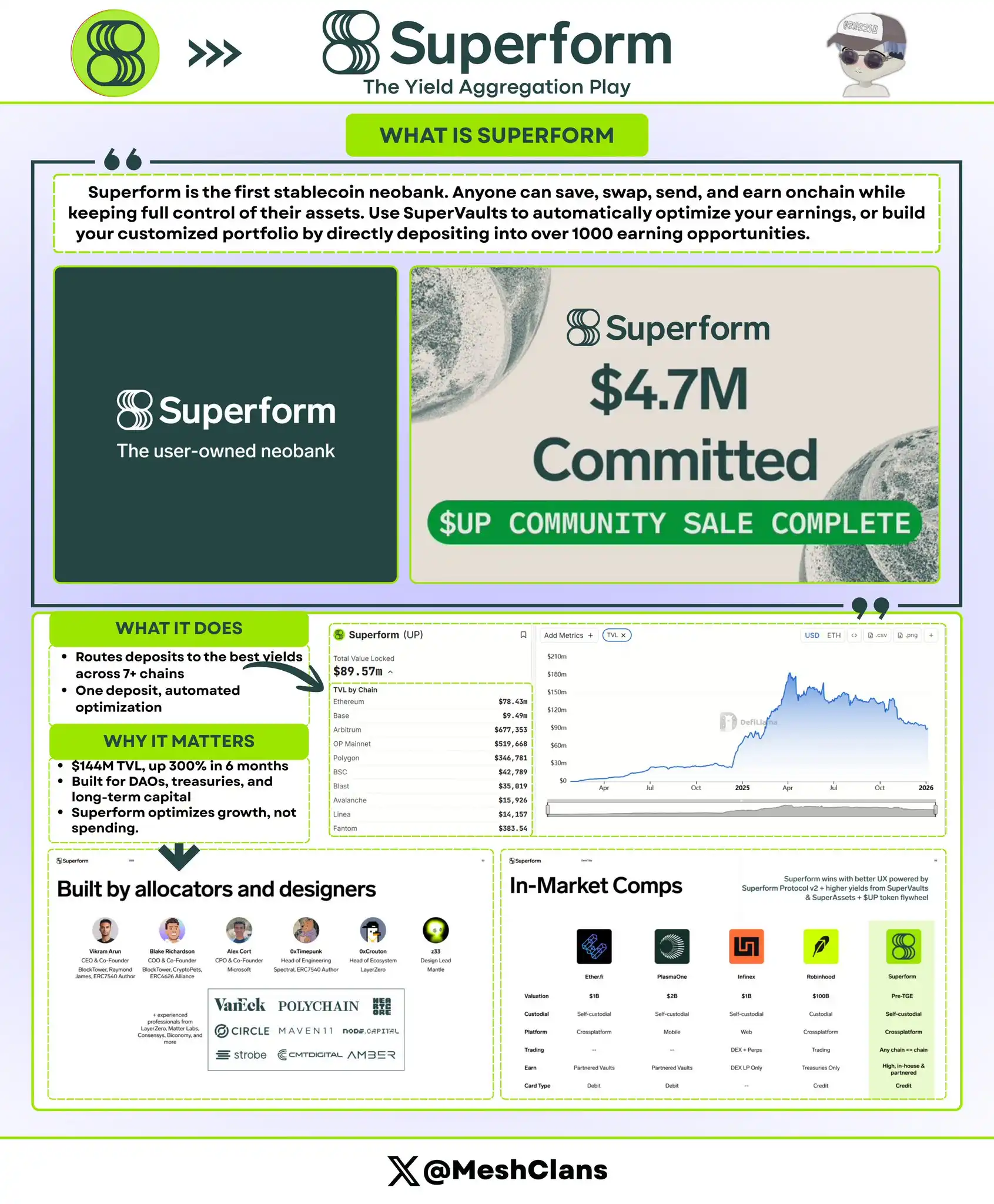 @superformxyz 从 2025 年年中起就引起了我的注意,那时它们的主要目标用户还是机构投资者。而现在,它们将自己定位为链上金融的“储蓄账户”。