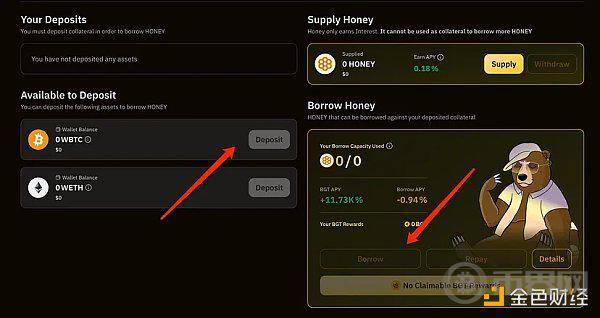 2、第四步的方法,质押BTC或者ETH,借出$HONEY。