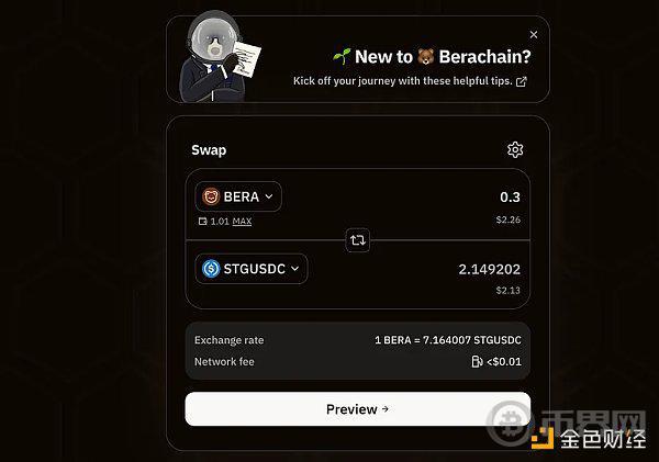 • 将$BERA兑换为$STGUSDC(不要超过BERA余额的30%)