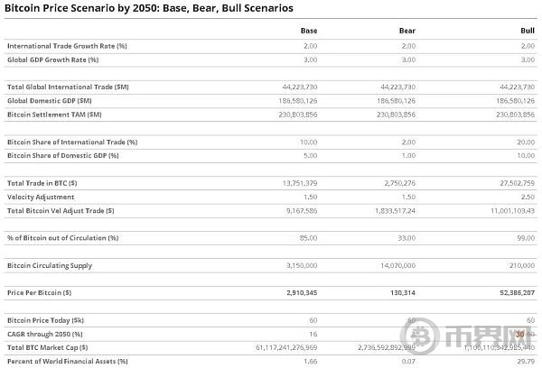 VanEck:推测2050年BTC价格,看牛情景或超5000万刀,全球10%国际贸易以BTC结算!