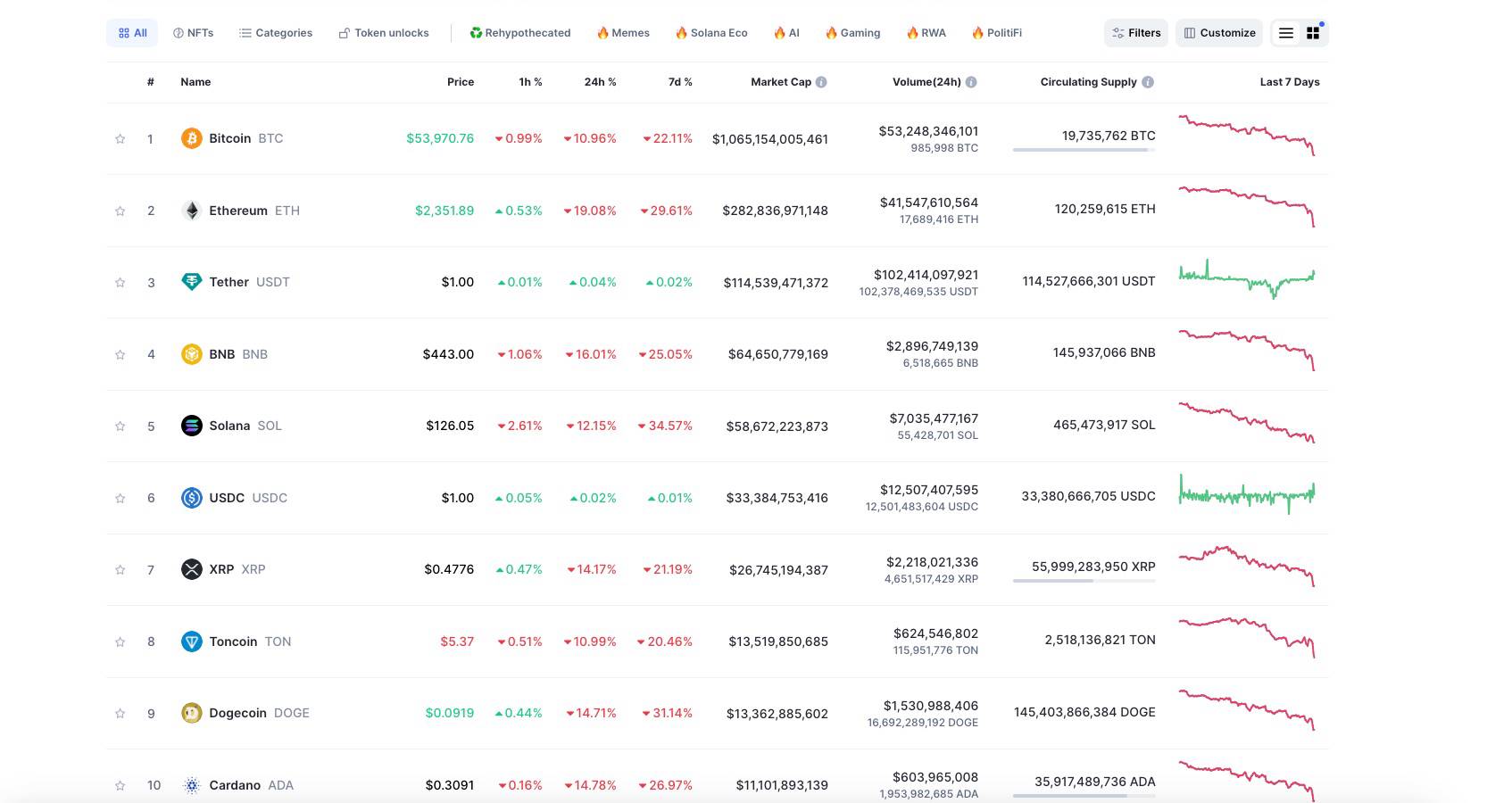 在这里我希望可以简单展望一下未来的走势,我还是希望大家不要被这部回撤吓到,因为尽管日元carry trade的规模不小,但是我认为美日联盟中,日本实际上还是属于打配合的一方,之所以在最近宣布加息也只是匹配美国的货币政策,我们知道美国之所以没有早早进入衰退,以及美联储之所以迟迟不降息的原因在于美国股市的活跃,即使中小企业已经遍地哀嚎,但是由于科技七姐妹,特指英伟达带来的财富效应,美国GDP由金融领域的带动仍没有出现明显衰退,如果美国贸然降息,将会极大刺激风险市场,从而极有可能造成通胀的重燃,这显然是不可接受的,但是参考美国当前的经济状况,美国又不得不降息,所以需要为美联储需要找到一个降息的原因,而这个原因,其实就是美股的回撤,那么为了配合这个政策,日本央行的出手就不难理解了。所以当美国正式进入降息周期内,随着流动性的再次宽松,加密资产必将再次迎来恢复。因此大家还是要保持耐心,对未来保持乐观。当然对于高杠杆的小伙伴来说,适当的降低杠杆率也是一个不得不面对的选择。