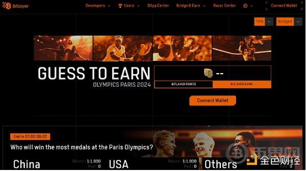 1.首先,你需要点击这个链接 Guess to earn | Olympics Paris 2024 来访问Bitlayer的官方活动页面。