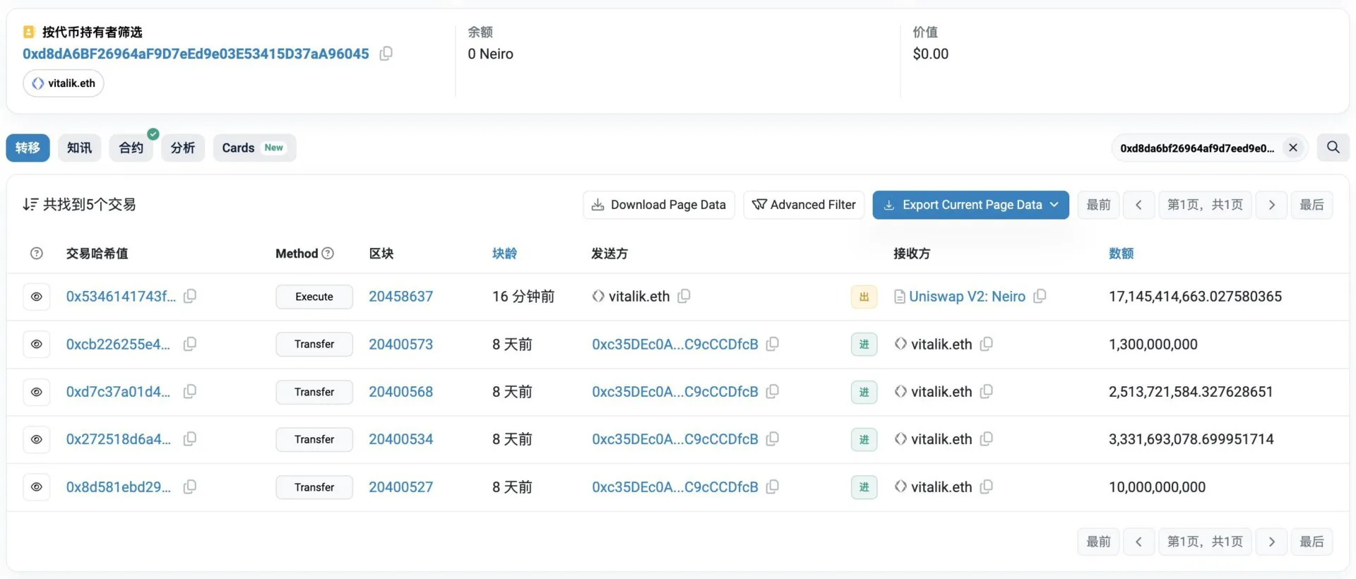 以太坊创始人Vitalik Vitalik决定,他的钱包里已经塞满了动物主题的模因币。于是,他将整堆动物捐赠给了一家动物福利慈善机构,一举将它们一扫而光。