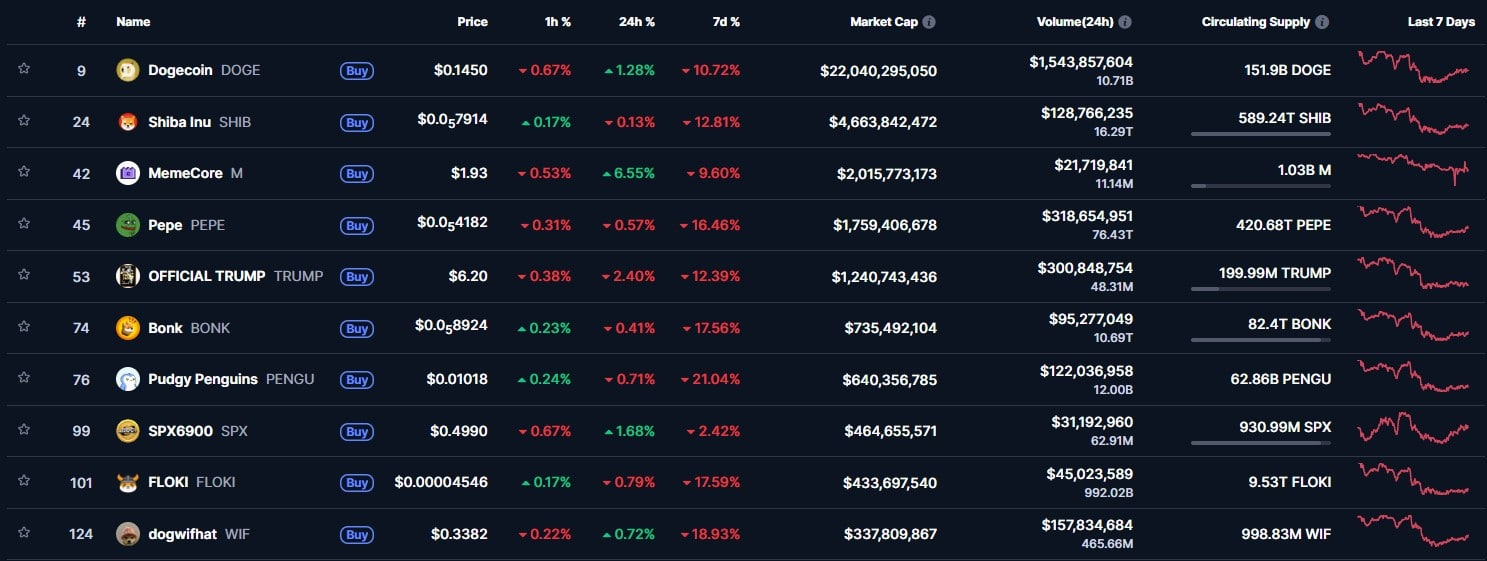 如今,市值最高的几种网络迷因币占据了加密货币市场相当大的份额。狗狗币市值达 220 亿美元,柴犬币 (SHIB)市值达 46 亿美元,MemeCore (M) 市值达 20 亿美元,Pepe (PEPE)市值达 17.5 亿美元。