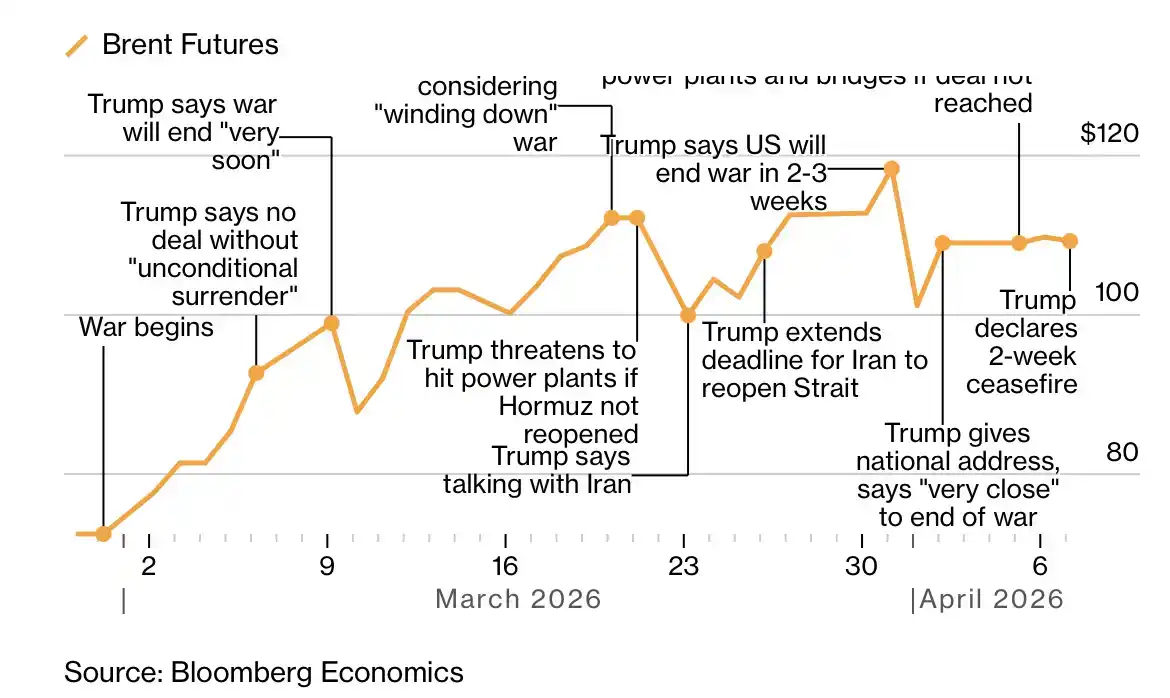 A特朗普宣布停火后一小时内油价下跌11%,市场短期反弹,但分析师认为油价下限仍将维持在每桶100美元左右,因伊朗对海峡的控制可能长期推高能源成本。