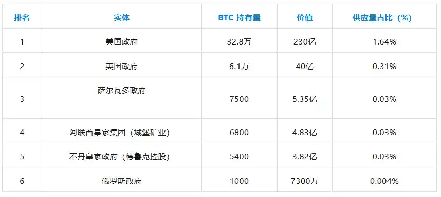 美国政府持有32.8万枚比特币。这些比特币来自对犯罪组织的资产查封。