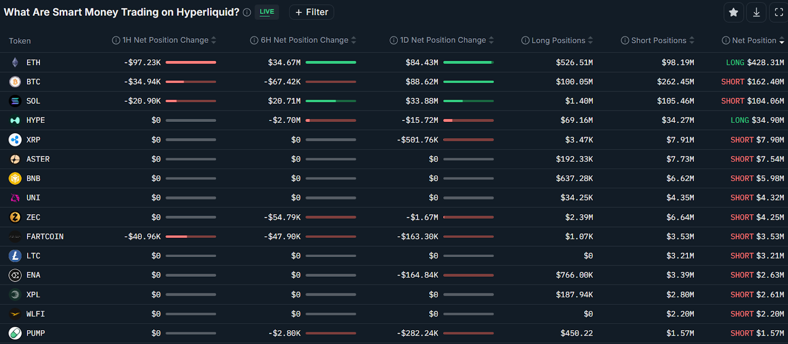 Nansen数据显示,聪明钱对Fartcoin(FART)净空头350万美元,对Pump.fun(PUMP)代币净空头150万美元。