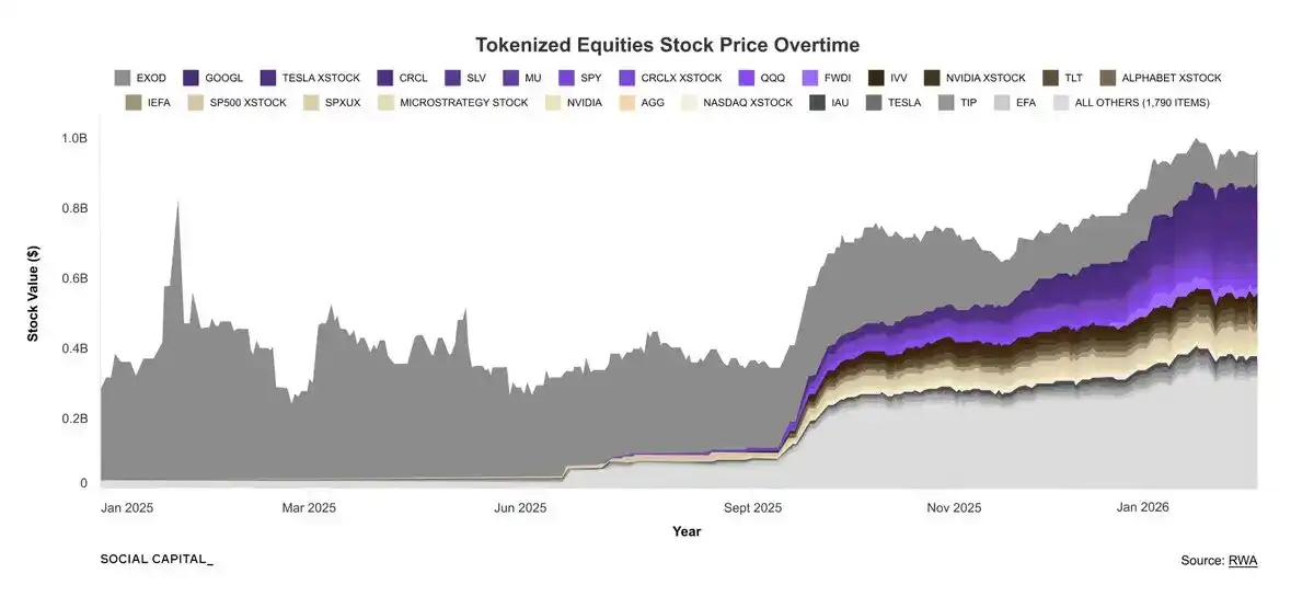 自 2025 年初以来,股权代币的市值增长了近 3.5 倍,反映出向现实世界资产代币化的更广泛转变。