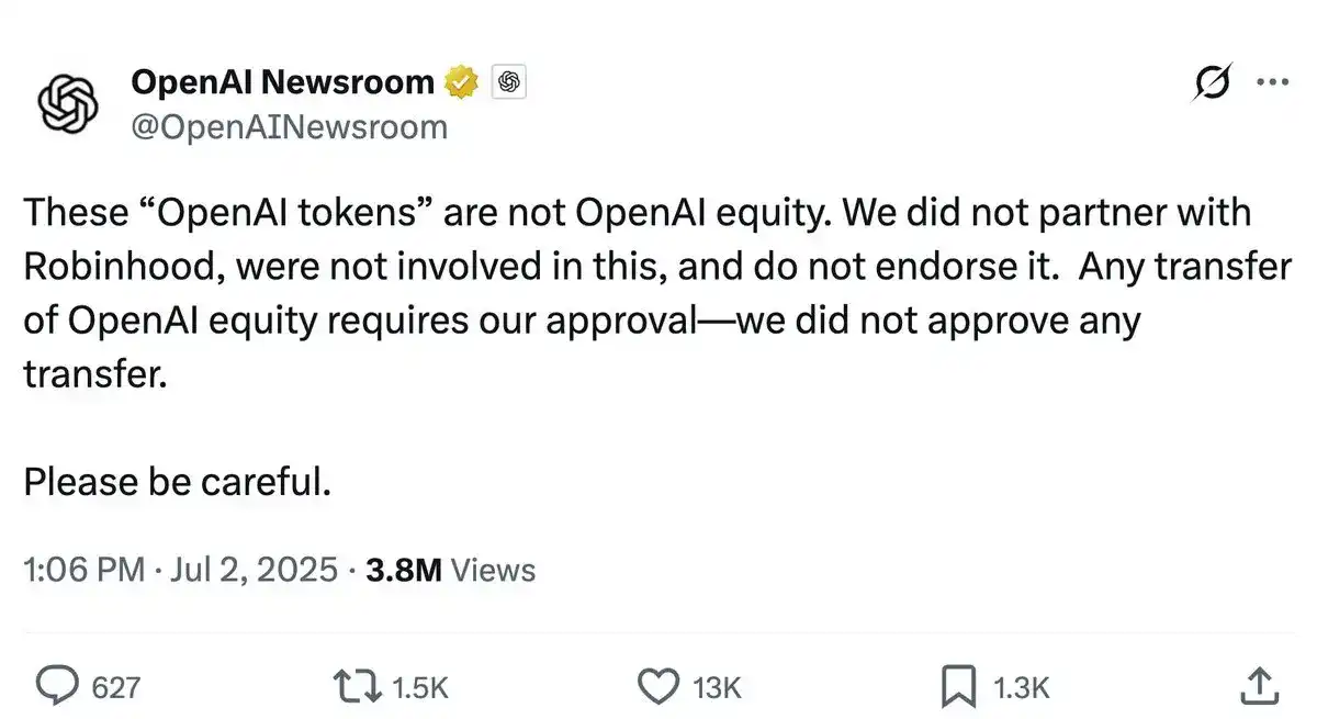这些代币让投资者获得了投资全球两家最炙手可热的私营公司的敞口。然而,它们并不代表对 OpenAI 或 SpaceX 股份的直接所有权。相反,这些代币代表的是与中间机构挂钩的财务权益。