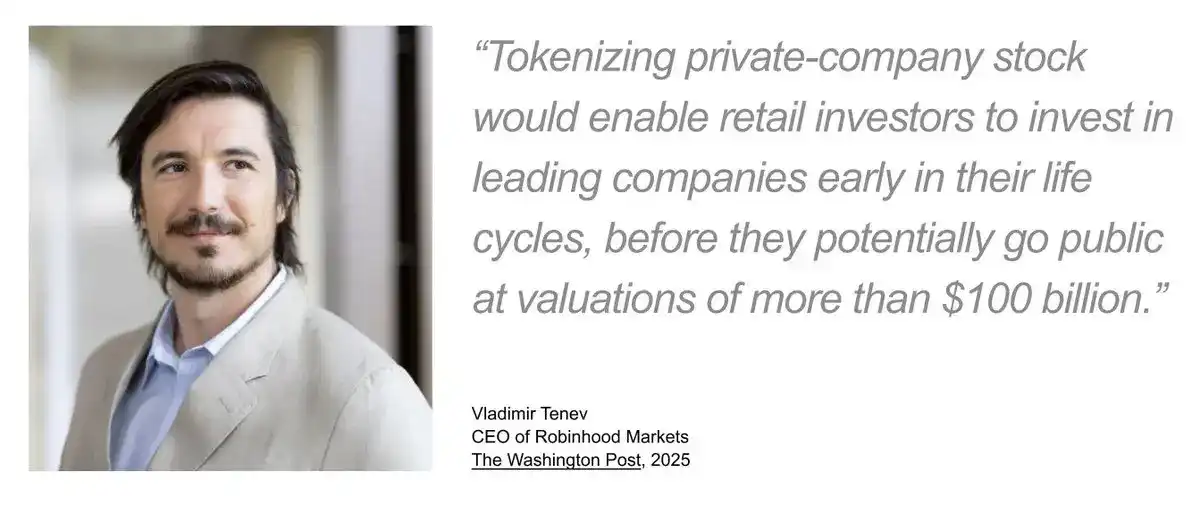 准入限制:虽然前两项优势主要适用于公开市场股票,但代币化也解决了私募市场的准入限制问题。