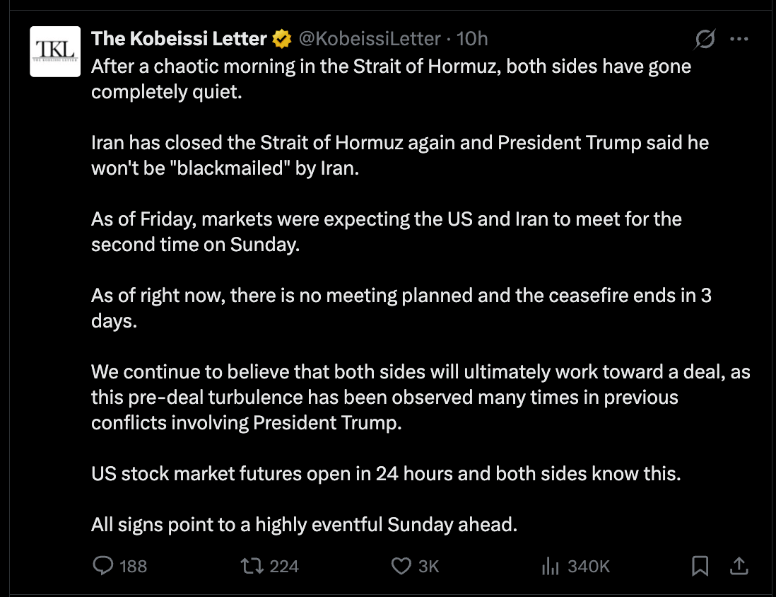 值得注意的是,随着近几周美伊达成停火协议,加密货币和全球金融市场原本已重现看涨势头。但由于停火协议即将在数日后到期,且谈判似乎陷入僵局,未来几天市场可能再度出现波动和不确定性。
