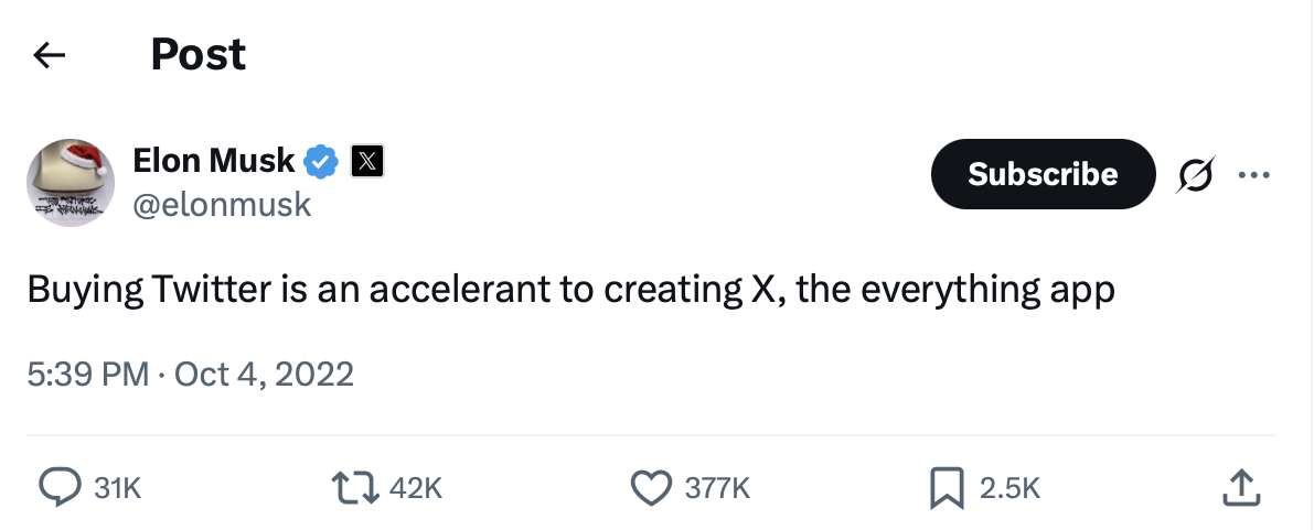 Tools for Humanity正在加入越来越多试图在西方国家构建超级应用生态系统的公司行列。在2022年10月收购Twitter后,Elon Musk发帖称“收购Twitter”是“创建X,即万能应用的加速器”。