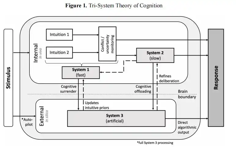 当人类走「认知投降」路径时,系统3的输出直接替代了你自己的判断,审慎思考根本没有启动的机会。