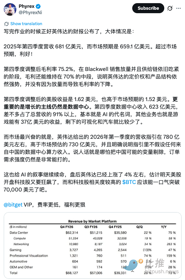 nvda一直都是beat,不过确实这次市场反响热烈,我认为主要是数据中心数据不错;