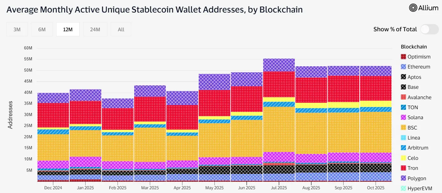 BNB Chain(BSC + opBNB)在稳定币领域的表现尤为抢眼,凭借低成本、Binance 生态深度绑定以及一系列激励活动,稳居稳定币领域前三区块链。