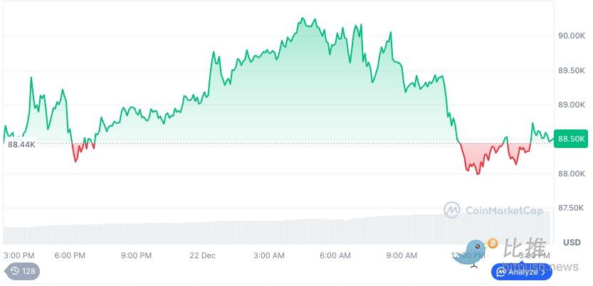 进入圣诞周,全球市场率先给出的答案却并不属于加密市场。在美元走弱、美债收益率回落的背景下,避险情绪迅速升温,黄金、白银率先接棒行情,价格接连刷新历史高位,成为资金最明确的去向。相比之下,加密市场显得异常冷清,比特币并没有跟随宏观顺风起飞,而是继续停留在8.8-8.9万震荡区间,缺乏节日前应有的进攻姿态。