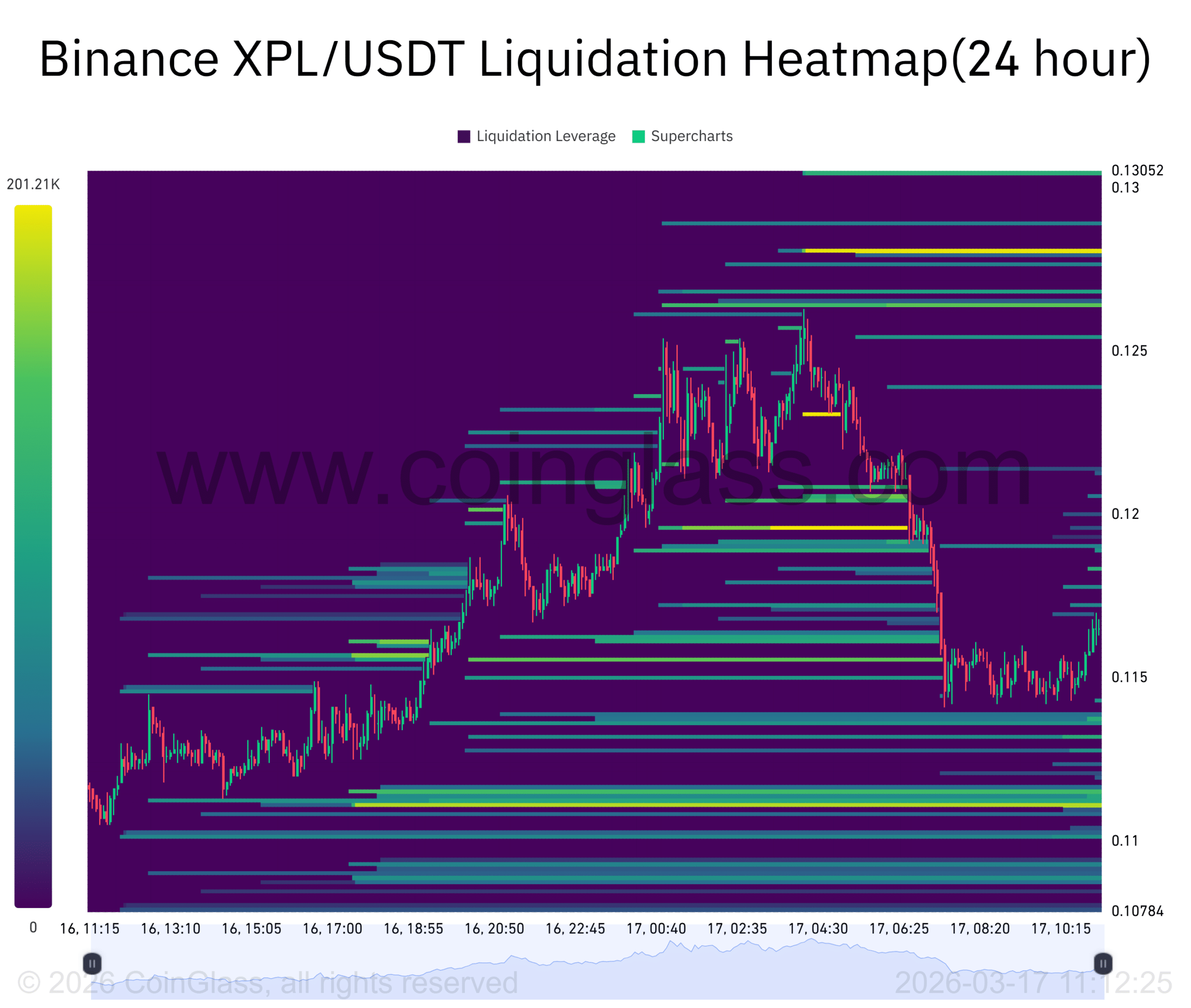 A流动性热图显示,在$0.128附近存在密集的流动性集群,如果XPL价格突破当前阻力并接近该区域,可能引发空头头寸的强制平仓,从而加速价格上涨。