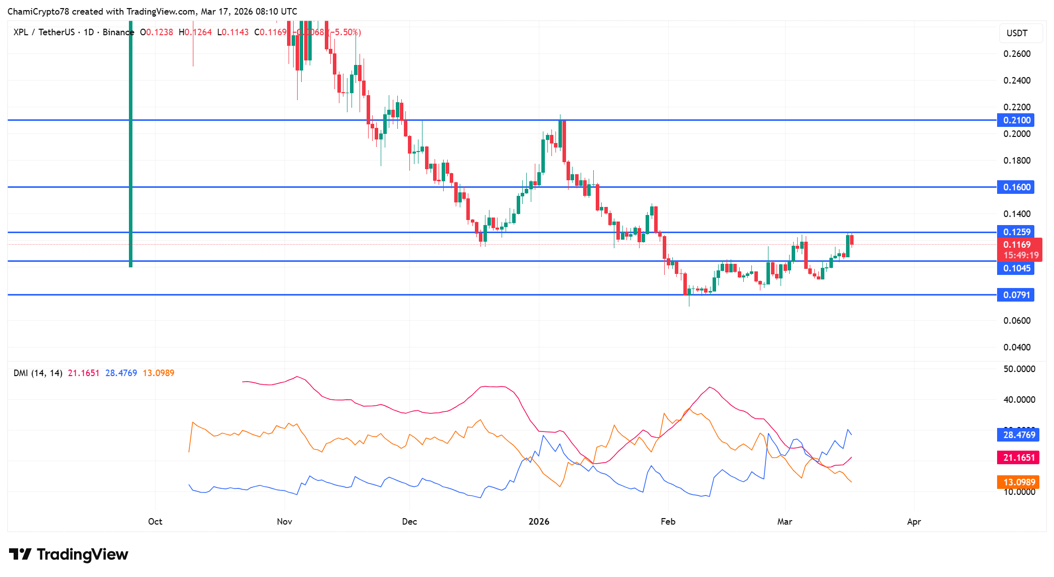 APlasma (XPL) 在3月17日上涨了12.89%,价格达到$0.1238,同时交易量增长了超过155%。