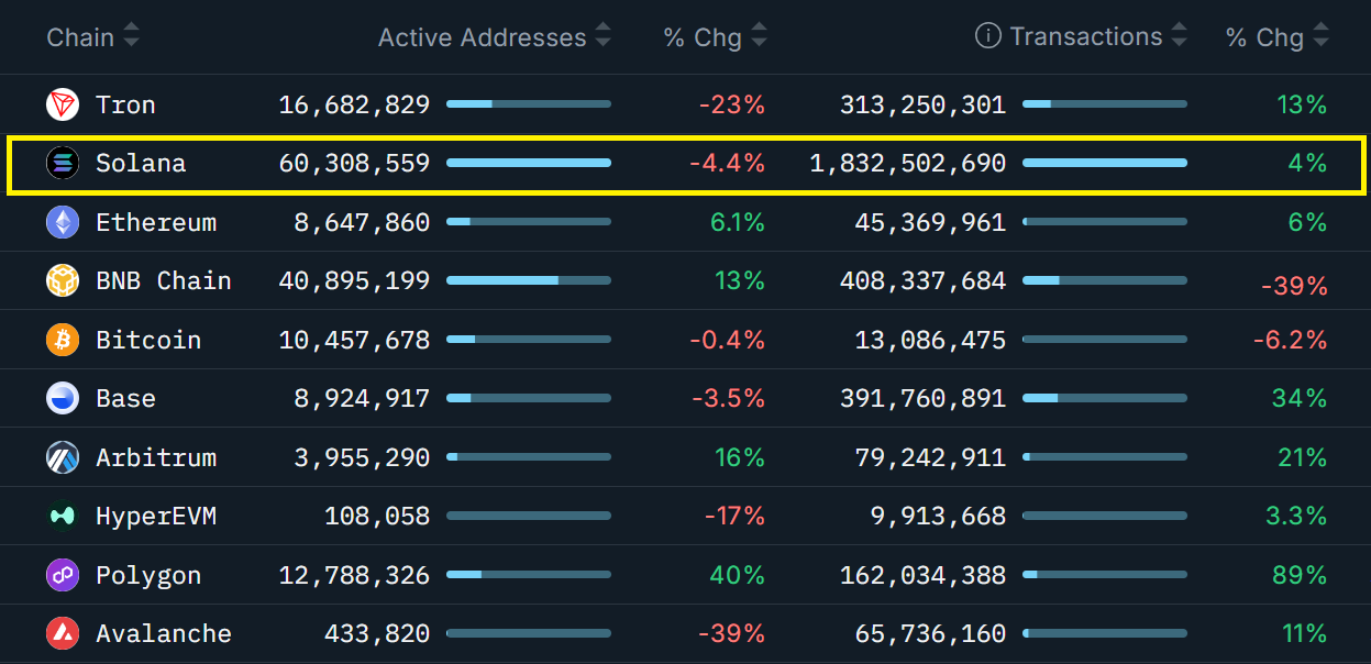 增长转向Base、Arbitrum、Polygon和BNB Chain,降低了SOL近期反弹的可能性。